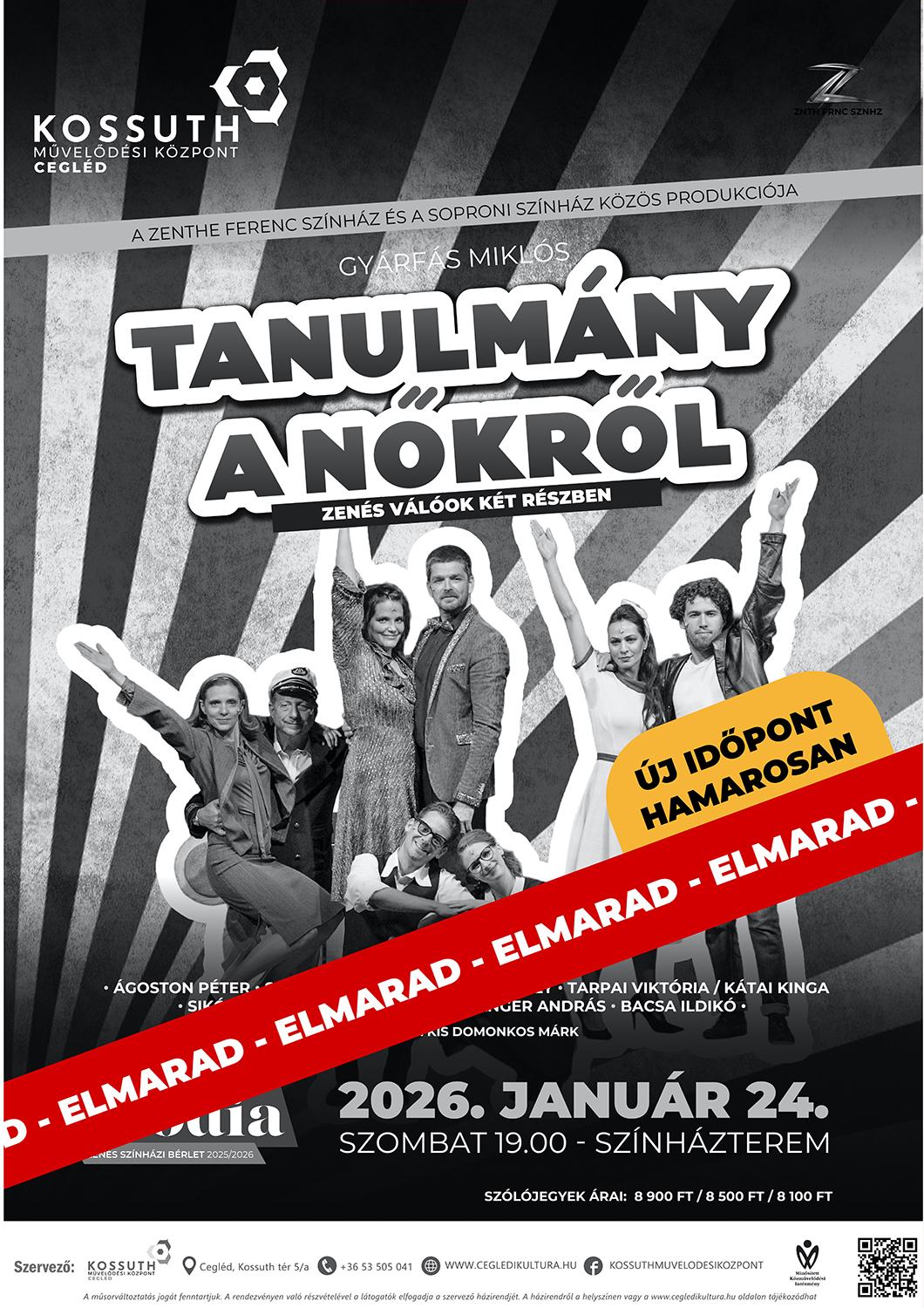 Tájékoztatjuk tisztelt közönségünket, hogy a 2026. január 24-re (szombatra) meghirdetett „Tanulmány a nőkről” című előadás betegség miatt elmarad.