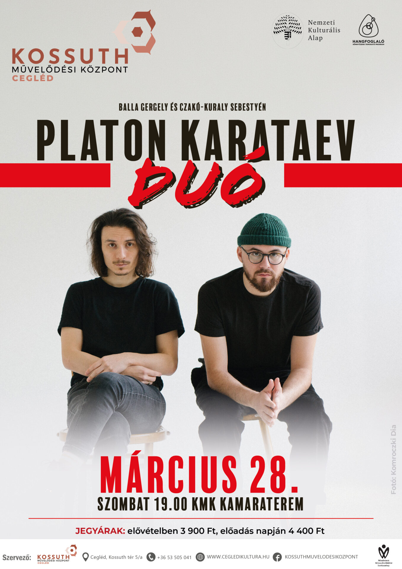 A Platon Karataev duó különleges, bensőséges koncerttel érkezik Ceglédre.