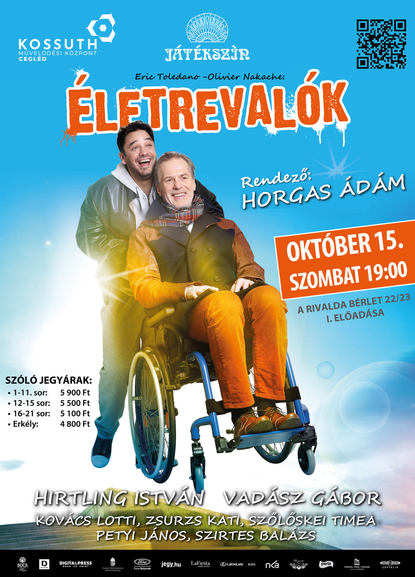 Életrevalók – Rivalda bérlet I. előadása 2022. október 15. szombat 19.00 A megható történet egy különös pár – egy kerekesszékre ítélt arisztokrata és ápolója, a külvárosi szegénynegyedben élő, börtönviselt fiatalember – őszinte barátságról, előítéletekkel leszámoló kapcsolatról szól. A 2011-ben készült ...